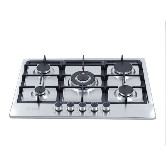 Plaque de Cuisson Encastrable Orient OP-5F-I3 - Nombre de feux : 5 Feux - Largeur : 70 cm - Fonction d’allumage : électrique - Type d’élément chauffant : Brûleur à gaz - Surface de la table de cuisson : Inox émaillé - 1xBrûleur WOK à Triple Anneau : 3300 W -1xBrûleur Rapide : 2500 W - 2xBrûleur Semi-Rapide : 1750 W - 1xBrûleur Auxiliaire : 1000W - Couleur : Inox - Garantie : 1 an