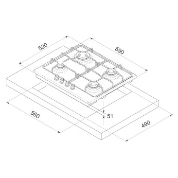 Table de cuisson Focus - Largeur : 60 cm - Nombre de Brûleurs : 4 Brûleurs à gaz - Flamme stabilisée - Grilles et chapeaux de brûleurs émaillées - Allumage Automatique - Commandes frontales - Dimensions 520 x 590 x 51mm - Couleur : Inox - Garantie 2 ans