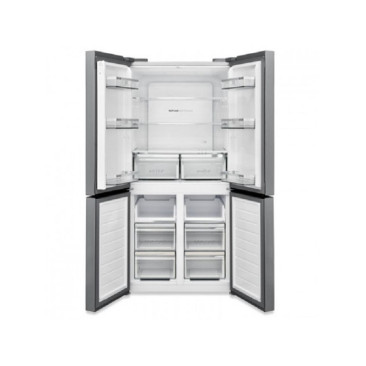 Système de Dégivrage : No Frost (Froid Ventilé) - Classe énergétique : 1 - Volume Net Totale : 459 Litres (Réfrigérateur : 319 Litres , Congélateur : 140 Litres) - Consommation d'énergie annuelle : 358 KWh - INVERTER : Oui (smart technologie inverter) - Eclairage LED - Nombre d'étoiles congélateur : ★★★★ - 2x Etagère en verre dans la partie réfrigérateur - 2x Bac à légumes - 6x Etagère porte - 2x tiroire dans la partie congélateur - 4 Bac dans la partie congélateur - Bac à Glaçons - Bac oeuf - Dimensions (LxHXP) : 84 x 179 x 69 cm - Type de Gaz : R600a - Couleur : inox - Garantie 1 an
