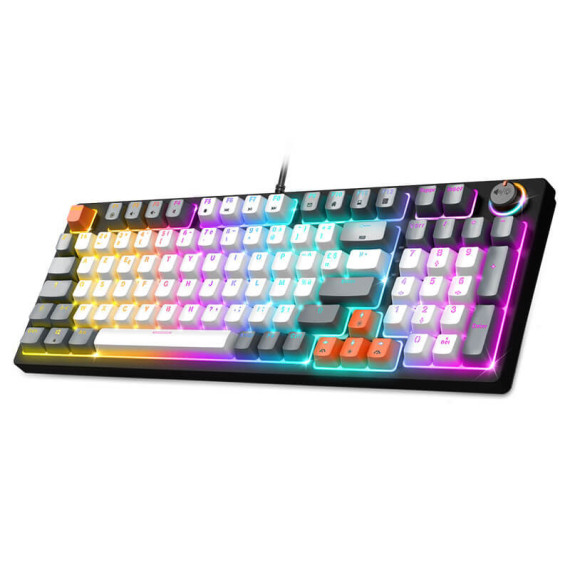Clavier mécanique Spirit of Gamer Xpert-K350 Dark, Connectivité: Filaire USB, Type de Clavier: Mécanique - switch hot-swappable marron, Norme: AZERTY, Format: compact, 97 touches, Antighosting Technologie Rollover 25 touches, rétroéclairage RGB (11 modes).