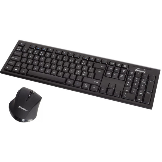 Pack Clavier Et Souris Sandberg 631-20 - Clavier : Technologie de Connectivité : Sans fil, Bluetooth - Interface : USB - Norme du clavier : QWERTY - Clavier Ultra-fin - Touches à faible bruit - Nécessite 2 piles AAA - Compatibilité : iPad, Android, Windows, macOS, tablettes, smartphones - Dimensions: 442 x 142 x 18 mm - Souris : Connectivité : Sans fil, Bluetooth - Interface : USB - Nombre de boutons : 5 Boutons - Distance de fonctionnement : 6-10 mètres - Fréquence : 2,4 GHz - Optique sans fil 1000/1200/1600 DPI - Nécessite 1 pile AA - Couleur : Noir - Garantie : 3 mois