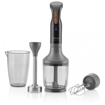 Mixeur Plongeant 3 en 1: Plongeur / Fouet / Hachoir - Puissance: 600 W - 2 Vitesses - Capacité du Bol Hachoir: 500 ml - Pieds INOX - Lame en acier inoxydable - Fouet adaptable - Couleur Noir - Garantie 1 an