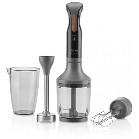 Mixeur 3 en 1 Arzum Prostick - Mixeur plongeant + Hachoir + Batteur - Puissance: 1500 W - Fonction Turbo - Capacité hachoir: 750 ml - Capacité bol: 900 ml - Lames et fouets en acier inoxydable - Couleur: Noir