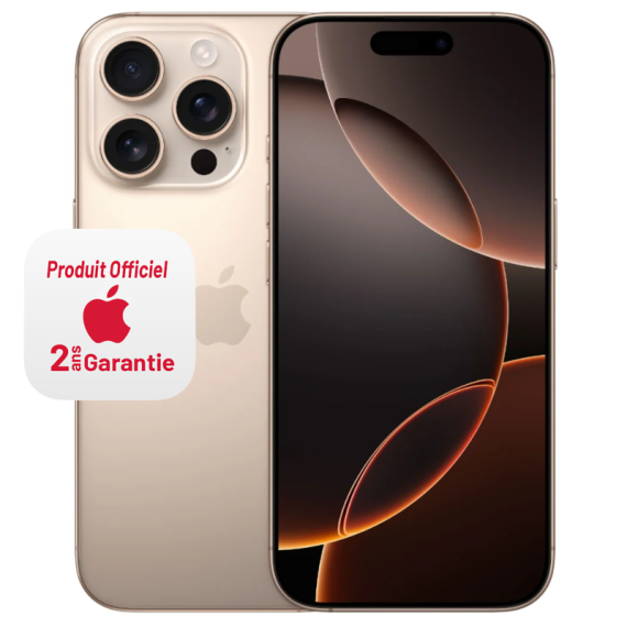 Smartphone APPLE iPhone 16 Pro / Écran 6,3" OLED Super Retina XDR (2556x1179 pixels à 460 ppp) / Processeur : Apple A18 Pro (3 nm) Hexa-core / GPU Apple graphiques 6 cœurs / Mémoire RAM : 8Go/ Stockage : 128Go / Système d'exploitation : iOS 18 / Appareil photo Arrière : Fusion 48 Mpx f-1,6, 26 mm + 12 Mpx, f-2,2, 13 mm / Zoom numérique jusqu’à 10x / Appareil Avant : 12 Mpx, f-1.9, 23 mm / Commande de l’appareil photo / Video Dolby Vision 4K / Face ID / Apple Pay / Siri / NFC / Indice de protection IP68 / Détection des accidents / SOS d’urgence par satellite / Connectivité : Wi‑Fi 7 - 5G - Bluetooth 5.3 et USB Type-C / Zoom numérique jusqu’à x25 / Streaming vidéo jusqu’à 18 heures - Lecture Vidéo jusqu’à 22 heures - Lecture Audio jusqu’à 80 heures / Batterie : Li-Ion 3582 mAh Avec Charge rapide jusqu’à 50% en 30 min / 25W sans fil (MagSafe) / Sans fil Qi jusqu’à 7,5 W / Double SIM (Nano-SIM - eSIM) / Garantie 2 ans.