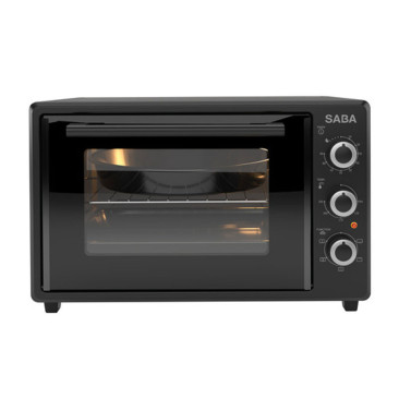 Four Électrique Saba 35500-L - Volume : 35 Litres - Minuterie : 90min - Thermostat -Ventilateur turbo - Double verre - 1 Plateau carré + Un plateau rond + 1 grille - Cavité intérieur - émaillée - Élément chauffant en acier inoxydable - Couleur :Gris - Garantie : 1 an
