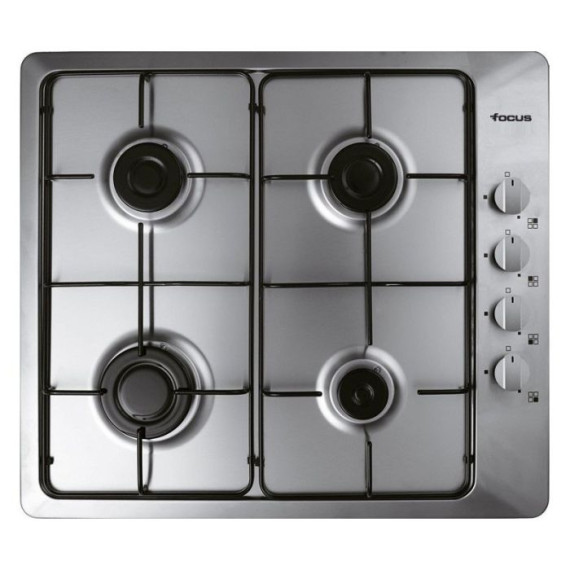 Plaque de Cuisson Encastrable FOCUS - Type de Plaque: à Gaz - Largeur: 60 cm - Nombre de Foyers: 4 foyers - Grilles émaillées et chapeaux de brûleur - Flamme stabilisée - Commandes latérales - Allumage automatique - Dimensions: 500 x 580 x 35 mm - Couleur: Inox - Garantie: 2 ans