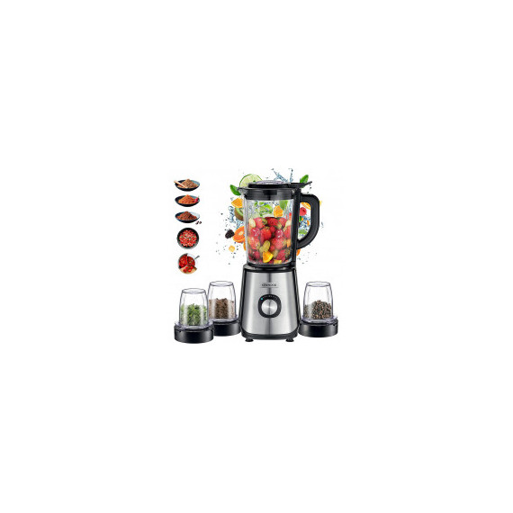 Blender Kenwood en verre avec trois moulins plastiques - Puissance: 1000watts - Capacité du Bol: 1.5 Litres - Nombre de vitesses : 2 Vitesse + Pulse - 3 Moulins: Lame pour Hacher Sharp, Multi Mill Et 2 Broyeurs Idéal Pour Les Herbes Et L'ail - Dimensions: 48.5 x 23 x 28cm - Poids: 4.94 kg - Couleur: noir et inox - Garantie : 1 an