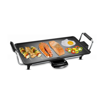 Puissance 2000W - Plaque totalement lisse avec une surface anti adhérente facile à nettoyer - Grande capacité de grill: 40,5 x 27 cm - Thermostat de température réglable avec un voyant lumineux - Poignées avec un tact froid pour une meilleure sécurité - Plateau pour récupérer la graisse - Prise de courant démontable pour faciliter son nettoyage - Garantie 3 ans