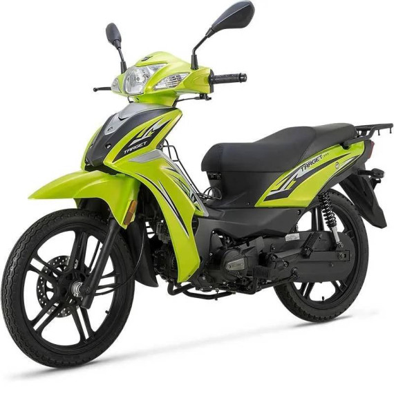 Scooter Zimota Target - Cylindré : 125 Cc - Moteur: monocylindre 4 temps - Refroidissement: A air - Capacité du Réservoir: 13.8 Litres - Couple maxi : 9.0N.m/5500 r/min - Freins AV / AR : Monodisque, ∅ 217 / Tambour, ∅ 130 - Pneumatique AV / AR : 70/90-17 / 80/90-17 - Dimensions : 1970 x 720 x 1110 mm - Poids: 112 kg - Couleur: Vert