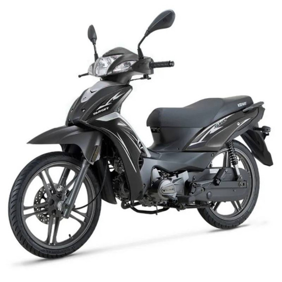 Scooter Zimota Target - Cylindré : 125 Cc - Moteur: monocylindre 4 temps - Refroidissement: A air - Capacité du Réservoir: 13.8 Litres - Couple maxi : 9.0N.m/5500 r/min - Freins AV - AR : Monodisque, ∅ 217 - Tambour, ∅ 130 - Pneumatique AV - AR : 70/90-17 / 80/90-17 - Dimensions : 1970 x 720 x 1110 mm - Poids: 112 kg - Couleur: Noir