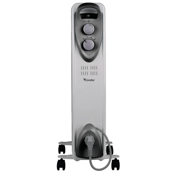 Radiateur Bain d'huile Condor 9 éléments - Puissance: 2000W - 3x Niveaux de température - Extinction automatique - Roulettes - Couvercle arrière - Humidificateur - Thermostat ajustable - Témoin d’alimentation - Poids Net: 15.8 kg - Dimensions: 63 x 24 x 66 cm - Garantie 1 an