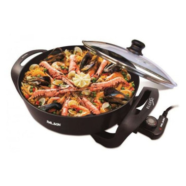Multi Cuiseur Electrique PALSON Eloise - Puissance: 1800 Watts - Capacité: 6 litres - Surface avec revêtement antiadhésif - Couvercle en verre avec poignée et soupape de sécurité - Thermostat réglable et démontable pour faciliter son nettoyage - Idéale pour frire, cuisiner, rôtir, préparer paellas, omelettes et pizzas - Finition élégante moderne - Dimensions: 46,7 x 38,9 x 15,8 cm - Couleur: Noir - Garantie: 3ans