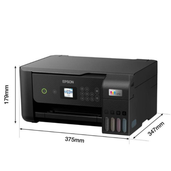 Imprimante Multifonction EPSON à réservoir intégré - Multifonctions : Impression, Numérisation, Copie - Mode d'impression : Tête d'impression Epson Micro Piezo - Résolution de l’impression : 5.760 x 1.440 DPI (ppp) - Vitesse d’impression : 33 pages/min Monochrome (papier ordinaire), 15 pages/min Couleur (papier ordinaire), 69 Secondes par photo de 10 x 15 cm (Papier Photo Epson Premium Glacé) - Vitesse de numérisation Recto (A4 en noir & Couleur) : 200 DPI (ppp) - Nombre de bacs papier : 1 - Capacité du bac de sortie papier : 30 Feuilles - capacité du bac à papier : 100 Feuilles Standard, 20 Feuilles photo - Connectivité : USB, Wi-Fi, Wi-Fi Direct - Poids : 4 kg - Dimensions (LxPxH) : 375 x 347 x 179 mm - Couleur : Noir - Garantie 1an