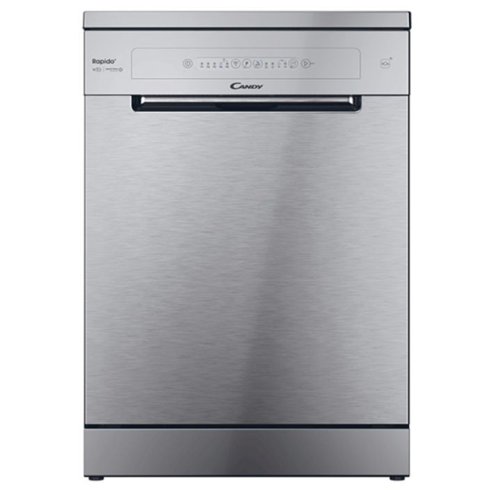 Lave Vaisselle CANDY - Nombre de Couverts : 13 Couverts - Nombre de programmes : 5 programmes - Départ retardé : 3-6-9 oh - Température maximale d'admission d'eau : 60°C - Affichage LED - Signal de fin de programme - Protection de l'Eau Standard - Longueur standard du programme : 3:54 - Application IoT : hOn - Système de séchage : condensation - Système de filtration autonettoyant - Arrêt de sécurité du panier inférieur - Troisième panier - Jambes de hauteur réglable - Niveau sonore : 47dB - Consommation d'eau 1 cycle : 10,9 Litres - Consommation d'énergie 100 cycles : 93 kWh - Poids net : 44,85kg - Dimensions (HxLxP) : 850 x 597 598mm - Couleur : Silver - Garantie 2 ans