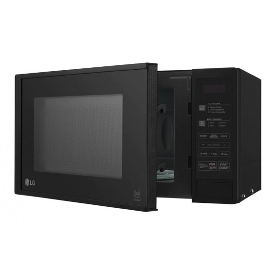 Micro-ondes LG - Type de Pose: Pose Libre - Volume: 20 litres - Puissance micro-ondes: 700 Watts - Taille du plateau tournant: 245 mm - Technologie i-Wave - Type de porte: Bouton poussoir - Type de plateau tournant: Verre - Nombre de niveaux de puissance: 11 - Verrou de sécurité pour enfants - Bouton de démarrage rapide - Revêtement EasyClean - Dégivrage automatique: 4 (viande, poisson, volaille, pain) - Cuisson automatique - Dimensions: 455 x 330 x 260 mm - Poids: 10 Kg - Couleur: Noir - Garantie 1 an
