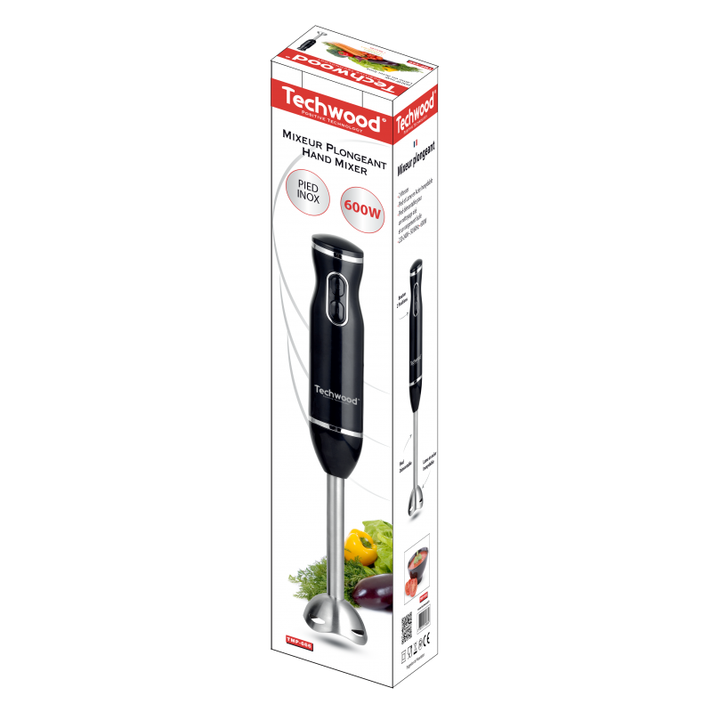 Mixeur plongeant - Puissance: 600 W - 2 Vitesses - Pied et Lame en Acier Inoxydable - Pied démontable pour un nettoyage aisé et un rangement facile - Alimentation : 220-240V~ 50/60Hz - Couleur Noir - Garantie 1 an