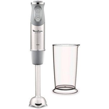 Mixeur MOULINEX QUICKCHEF - Puissance : 1000W - Nombre de vitesses : 10 Vitesses - Capacité de mini Hachoir : 500ml - Capacité de Goblet mesureur : 800ml - Pied antiéclaboussures - Pièces amovibles est compatibles au lave-vaisselle - Couleur : Gris - Garantie 1 an