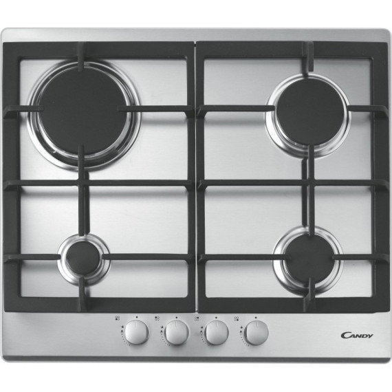 Plaque de Cuisson CANDY - Type de Table: Gaz - Largeur: 60 cm - Nombre de Foyers: 4 Foyers - Grilles en fonte - Thermocouple - Allumage intégré - Système de sécurité - Matière: Acier inoxydable - Dimensions: 590 x 510 x 35 mm - Couleur: Inox - Garantie: 2 ans