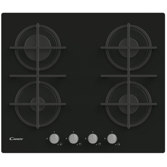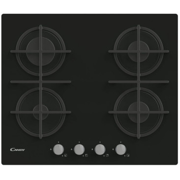 Plaque de cuisson Candy - 4 Feux - Gaz sur verre - Allumage Intégré - Matière: verre trempé - Grilles en fonte - Commande frontale - Sécurité gaz par thermocouple - Design épuré - Dimension: 485 x568 x 42 mm - Poids 13kg - Couleur: Noir - Garantie: 1 an