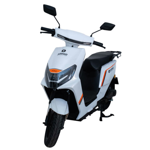 Scooter Électrique NOVAGO Pika, Puissance : 800 Watts, Vitesse max moyenne : 40 km/h, Batterie : 20 Ah, Temps de recharge : 2 heures, Autonomie de batterie : 50 km, Système d'alarme intégré - Blocage du volant, Blocage volant et roues, Éclairage : LED lumière, Freins : doubles avant et arrière, Design moderne, Couleur : BLANC, Garanties : Scooter 1 an, Batterie 2 ans
