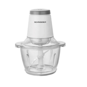 Mini Hachoir SCHNEIDER – Capacité 1,2 L, Puissance 400 W, 1 bouton de vitesse, Bol en verre, 2 lames fixes à 2 couches et 4 couteaux, Pieds en caoutchouc antidérapants, Couleur Blanc, Garantie 1 an