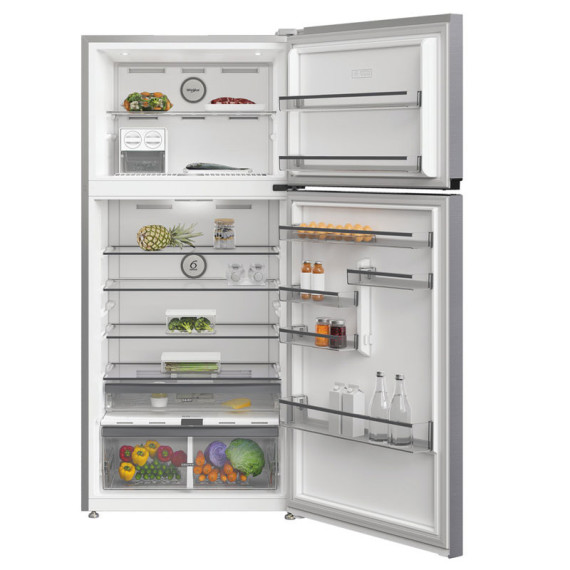 Système de Dégivrage : No Frost (Froid Ventilé) - Volume Net Totale : 630 Litres - INVERTER : Non - Eclairage intérieur LED - Nombre d'étoiles congélateur : ★★★★ - Technologie 6ème Sens - Multiflow - 5x Clayettes en Verre - balcons ajustables - 3X tiroirs de congélation - 1x bac à légumes - Porte reversible - Pouvoir de Congélation : 10Kg /24h - Niveau Sonore : 37dB - Dimensions (LxHXP) : 83,2 x 187,7 x 76,2cm - Type de Gaz : R600a - Couleur : inox - Garantie 2 ans
