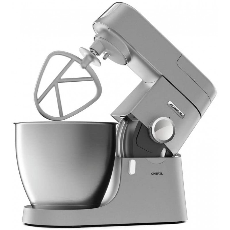 Robot multifonction Kenwood Chef XL - Puissance 1200 W - Contrôle électronique de la vitesse - Capacité bol 6.7L - Bol en Inox - Blender en plastique - Accessoires: Pétrin, batteur K, fouet, spatule, couvercle anti-projection - Dimensions: 38.5 x 28 x 34.5 cm - Poids: 7.658 Kg - Couleur Silver - Garantie 1 an