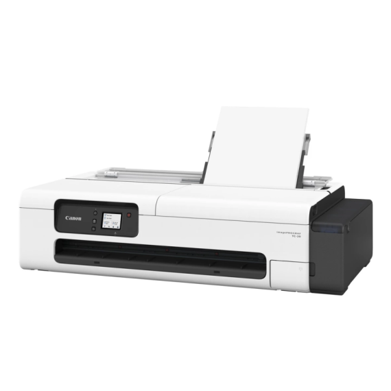 Traceur Canon imagePROGRAF TC - Technologie d'impression : Encre pigmentée Canon, 4 couleurs, modèle intégré - Résolution d'impression : 2400 × 1200 ppp - Nombre de buses : Total : 4352 buses - Densité des buses : 1200 ppp x 2 lignes - Interfaces : Port USB A : N/A, Port USB B : USB haute vitesse, Ethernet, LAN sans fil - Mémoire standard : 1GB - Vitesse d'impression : Plan : Papier ordinaire (A1, N&B) : 0:33 (standard), Papier ordinaire (A1, couleur) : 1:03 (standard) - Affiche : Papier ordinaire (A1) : 1:10 (rapide) / 2:08 (standard), Papier couché (A1) : 3:10 (rapide) / 6:05 (standard) - Compatibilité des systèmes d'exploitation : Windows 7 et versions ultérieures, macOS 10.14.6~macOS 12,x - Précision du tracé : ± 0,1 % maximum - Alimentation électrique : 100 à 240 V (50/60 Hz) - Couleur Blanc - Garantie 1 an